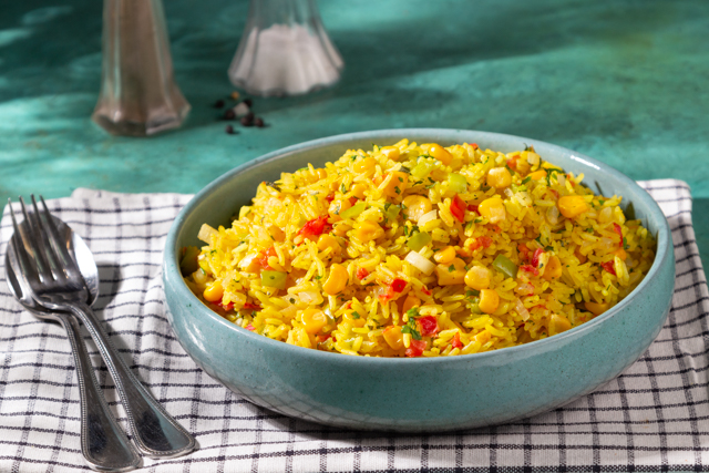 - في حلة نسوي الارز مع مرق الخضروات و الكركم و الكسبرة بالطريقة المعتادة