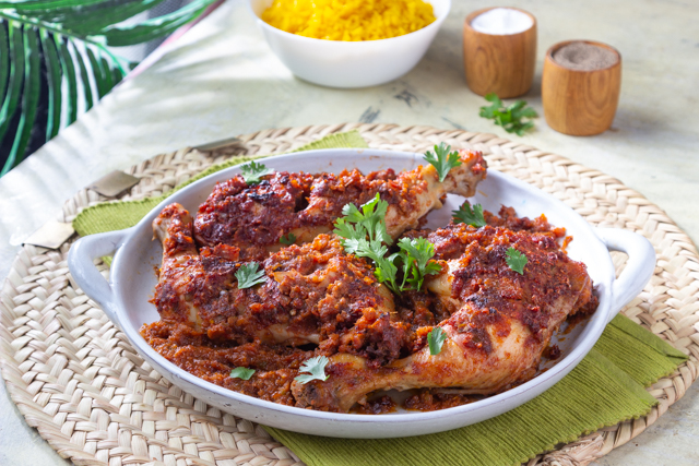 • يتم عمل فتحات بالسكين فى الدجاج وتتبل بالخلطة
