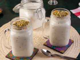 - نضيف خليط النشا علي الحليب المغلي تدريجياً مع التقليب حتي يغلظ القوام يرفع من علي النار