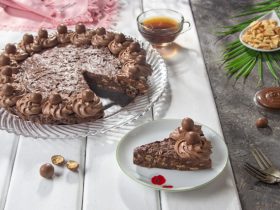 - نضع الكريمه و الجينه الكريمي في كيس حلواني و نغطي بيها التارت تدخل التلاجه ساعتين ونزين التارت بصوص كراميل و يقدم