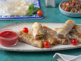 - ندخله فرن لمدة ١٠ دقايق علي درجه حراره ١٨٠