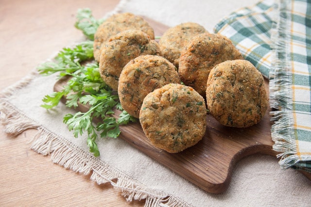 - نشكل الخليط على شكل أقراص ونضعهم في البقسماط ونقليهم في الزيت حتى يصبح لونهم ذهبي ثم يقدم وبألف هنا.