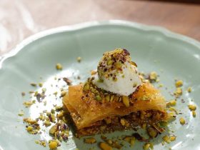 - تقطع العجين على شكل كور صغيرة مدورة ثم تبطط الكوره و تغمس في المكسرات "كمية صغيرة في المنتصف" .