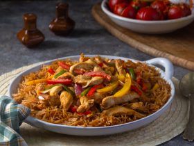 - وفي طاسة علي النار نضيف فيها زيت ونحمر فيها البصل واول مايخد لون ذهبي