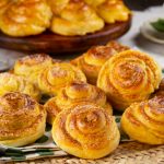 - ونلفها رول ثم نضعها على صاج الفرن وندهنه ونرش السمسم او حبة البركة