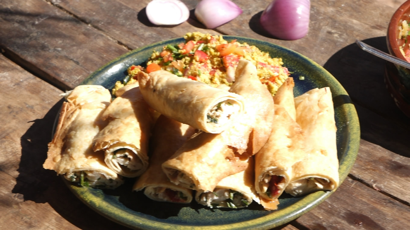 - يقطع الجلاش الي مربعات ويتم حشوة بخليط التفاح ودهنة بالزبدة ثم رصة في الصينية .