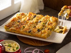 - في وعاء اخر نضع الجبنة ثم نضف الكريمة المخفوقة "بدون فقد الهواء "