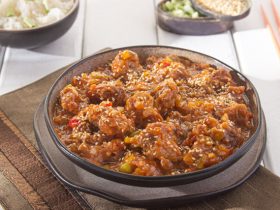 - واخيرا نغرف الارز وعليه الاستربس وفوقه الصوص