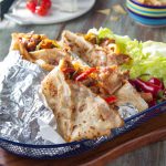 - نخرج الدجاج من الفرن و يرش عليها البيستو و شرائح الطماطم و الجبنة الموتزاريلا و تعود الى الفرن لمدة 35 دقيقة .