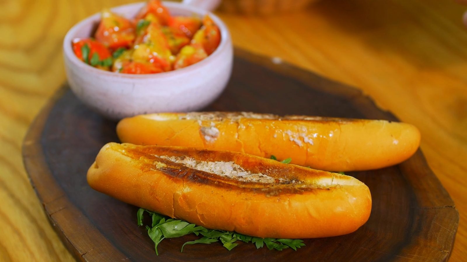 ساندوتش مخ بالذبده مع الطماطم بالمسترده