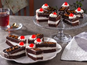 • ونضعها على صينية الفرن وندخلها فرن ساخن على 180 لمدة 15 دقيقة