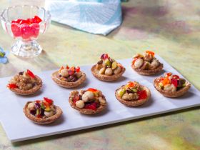 - اولا يقطع الخيار شرائح و البصل ويوضع في وعاء التقديم