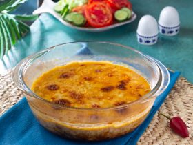 - يسكب الخليط في الطاجن ل تلت أربعه ونضع الطواجن في صاج وندخله فرن ساخن علي درجة حرارة 200 درجة لمدة 15 دقيقة