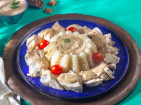 - نحضر بصله كبيره ونغرز فيه عصيان خشب كبيره ثم نضع البرجر واحده وراء التانيه وبينهم جبنه وندخلها الفرن علي درجه حراره 180 حتي تنضج وتتحمر ونحضر العيش و نضع كاتشب و كابوتشاوشاورمه البرجر وعليها شريحة جبن ثم طماطم والبصل ويقدم مع بطاطس محمره