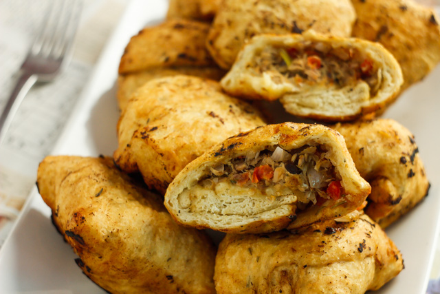 - فى طاسه ساخنة على النار بها زيت يشوح البصل مع اضافة الفلفل و المشروم و خل و زعتر و ملح و فلفل و يترك الخليط يشوح دقيقتان