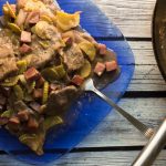 - يقطع اللحم المدخن ويضاف مع البصل والزيت في حلة ويضاف الثوم والكرفس ثم يضاف بعد ذلك الفاصوليا الحمراء والطماطم ويترك علي النار حتي النضج