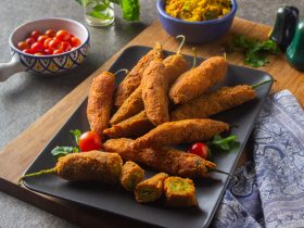 - تدخل الفرن على درجة حرارة 200 من فوق وتخت حتى يأخذ لون ذهبى