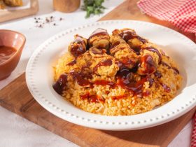 - وندخله فرن ساخن لمدة 5 دقائق الجبنه تأخد لون والكريب ياخد لون ذهبي وبالف هنا