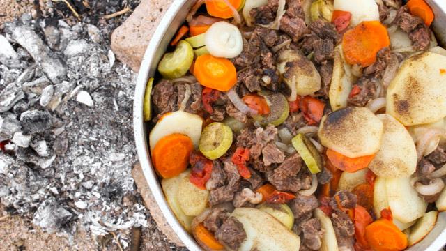 - يتم تقطيع البطاطس و الجزر و الكوسة و البصل و الطماطم الى شرائح
