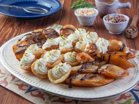 - ثم يتم وضع طبقة البشاميل على الوجه و تدهن بالقشطة او الكريمة ثم تدخل فرن ساخن حتى يحمر الوجه