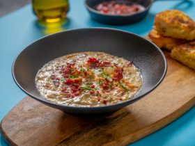 - نضيف الطماطم وهى اختيارية ونتبل برشة من الملح والفلفل والبهارات وهريسة الشطة
