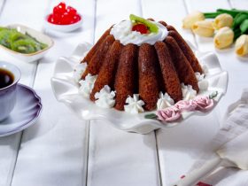 - وتدخل الفرن على حرارة عالية على الشبكة لمدة ¼ ساعة الى ان يصبح لونها ذهبى جميل وبالف هنا