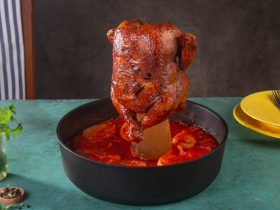- ونضع الصوص على الجمبرى مع القليل من الشبت وتقدم بالف هنا.