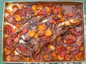 - نحضر كسارول على النار بها القليل من الزيت ثم الثوم ويحر إلى أن يصل إلى اللون الذهبي ويضاف الصلصة والخل بعدما تغلي نرفعها من على البوتجاز ونتركها على جنب عند التقديم.
