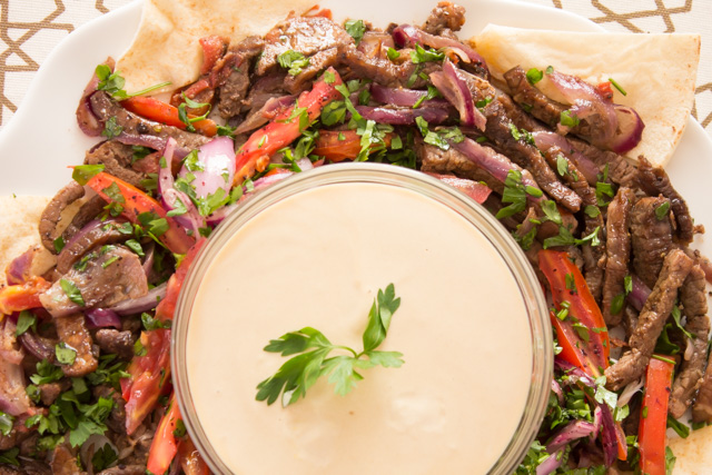 - في بولة اخري يخلط الزبادي مع الطحينة والثوم المفروم ثم يضاف من هذا الصوص للفتة