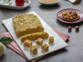 - ورقه زبده مدهونه زيت و هنفرد عليها الفشار فالثلاجه لمده عشر دقائق , وبعدين نجهز صوص الكارميل هو ربع كيلو سكر و نحط نص صوص مايه علي نار هاديه و في الاخر رشه بيكنج بودر.