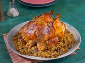 - تدخل فرن ساخن على درجة حرارة 220 حتى تمام النضج.
