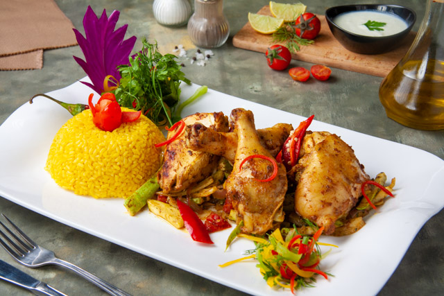 - في طاسة على النار نضع القليل من الزيت ثم نضيف شاورما دجاج أطياب لتشوح وبعد أن تنضج نضيف الطماطم والبقدونس