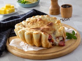 - تغطى بالومنيوم فويل، ثم تدخل فرن سخن على اعلى درجة على الرف اوسط لمدة 10 دقائق.