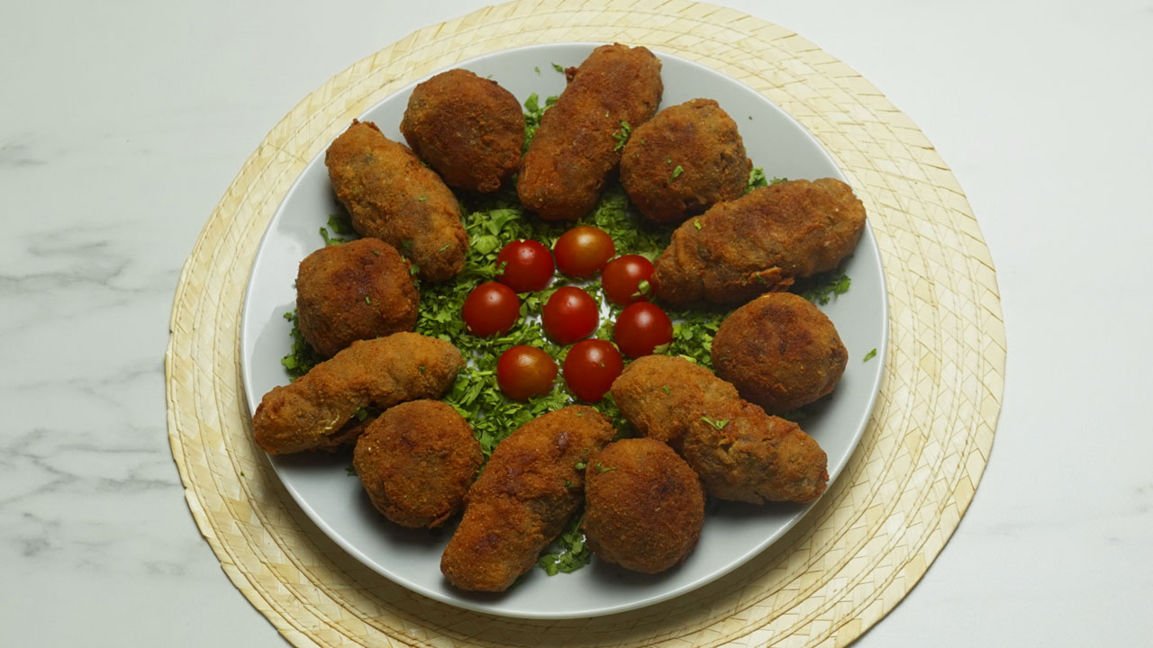 - تبدر كرات اللحم فى الدقيق ثم البيض والحليب ثمالبقسماط وتقلى في زيت غزير