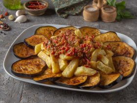 • نتركها تبرد وتقلب ونزيل ورق الزبدة وتقطع مربعات
