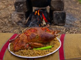 - تترك لمدة 30 دقيقة حتى تتشرب الازنيا من البشاميل ثم تتدخل الفرن على درجة حرارة متوسطة وتترك حتى تأخذ لون ذهبي خفيف