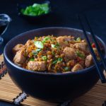 - اضافة التوابل ملح و فلفل اسود ونقلب قبل ما نطفي عليها نضيف مكعبات البطاطس المحمره عليها وتقدم