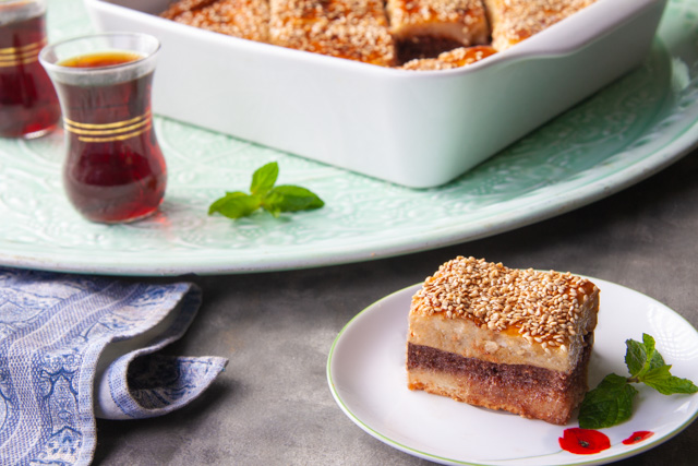- وتقطع وتلمع وترش باسمسم وتخمر مره اخري وتدخل الفرن 200 حتي تحمر واول متخرج تسقي بالشربات البارد