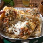 - في مقلاة على النار نضع الزيت ونشوح الثوم مع الماشروم ثم اضافة الحليب ونقلب جيدا ثم اضافة الجبن
