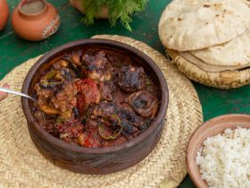 - وتتبل بالملح والفلفل وبهارات الدجاج وقليل من الكاري