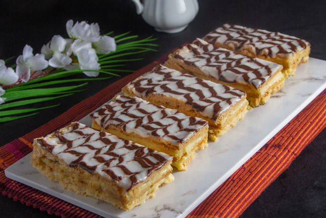 - ونضعهم فوق بعض وبين كل طبقة والتانية طبقة من الكريم باسترى ثم تزين بالجلاز