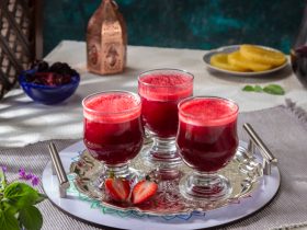 - تخلط كل المقادير بالخلاط ما عدا الثلج واحدة واحدة للحصول على قوام الشيك