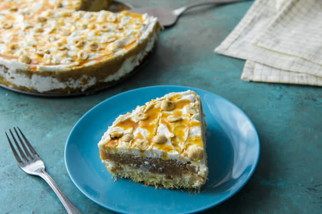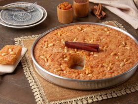- تسقى البسبوسة بالشربات المحضر وتقلب ثم تقدم بالهنا والشفا مزينة بقليل من الفستق المطحون .