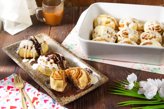 - وتفرد العجين ويوضع طبقة من الزبدة وعليها سكر وقرفة