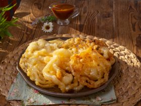 - تلمع بالعسل او المربى وتزين بالكريز والفستدق وجوز الهند وبالف هنا