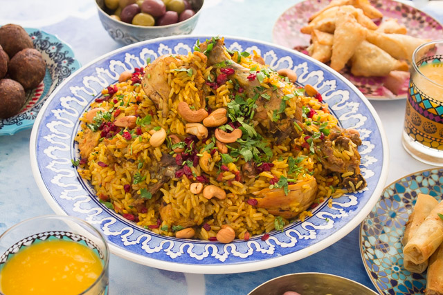 - يضاف الارز المنقوع والمصفى ثم يقفل القدر ويترك مدة 15 دقيقة على النار، 5 دقائق على نار عالية ثم 10 دقائق على نار هادئة.