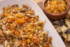 • اعداد قلب الباذنجان كطبق سلطة : ناخذ قلب الباذنجان المحتفظ به من قبل ونتبله بالملح والفلفل وجنزبيل وقرفة وزيت زيتون ويدخل الميكرويف لمدة دقائق حتي يكون لين ويزين بالزبيب او اي مكسرات ويقدم مع المحشي وبالهنا والشفا