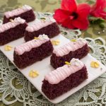 - علي سطح مرشوش بالدقيق نضع شريحه باف باستري تفرد ثم تقطع بالقطاعه المربعه وتوضع في صينيه الكب كيك وتدخل فرن لمدة 10دقائق.