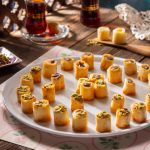 - يسكب الشربات علي البسبوسه ساخنه ويغطي لمدة ١٠ دقائق