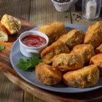 - في مقلاة بها زيت غزير يتم تحمير البطاطس.